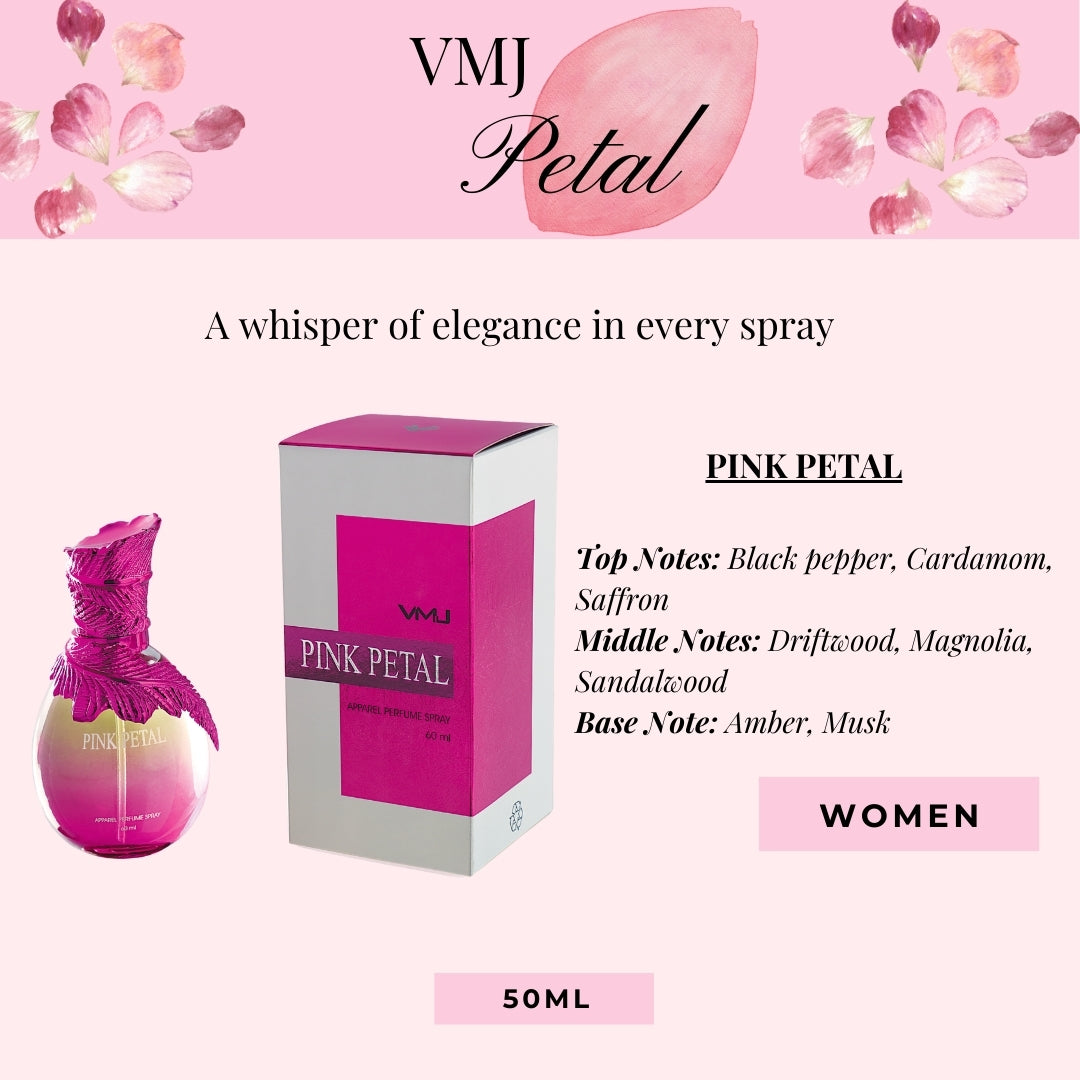 Introducing VMJ Pink Petal by VIWA Perfumes – a floral symphony of freshness that lingers beautifully. Housed in a chic 60ml packaging, this perfume is crafted with over 30 years of perfumery expertise. Immerse yourself in the delicate and enduring fragrance of VMJ Pink Petal, designed for those who seek a fresh and long-lasting floral experience. Elevate your senses with this exquisite creation, where VIWA Perfumes' legacy of excellence meets the essence of enduring allure.