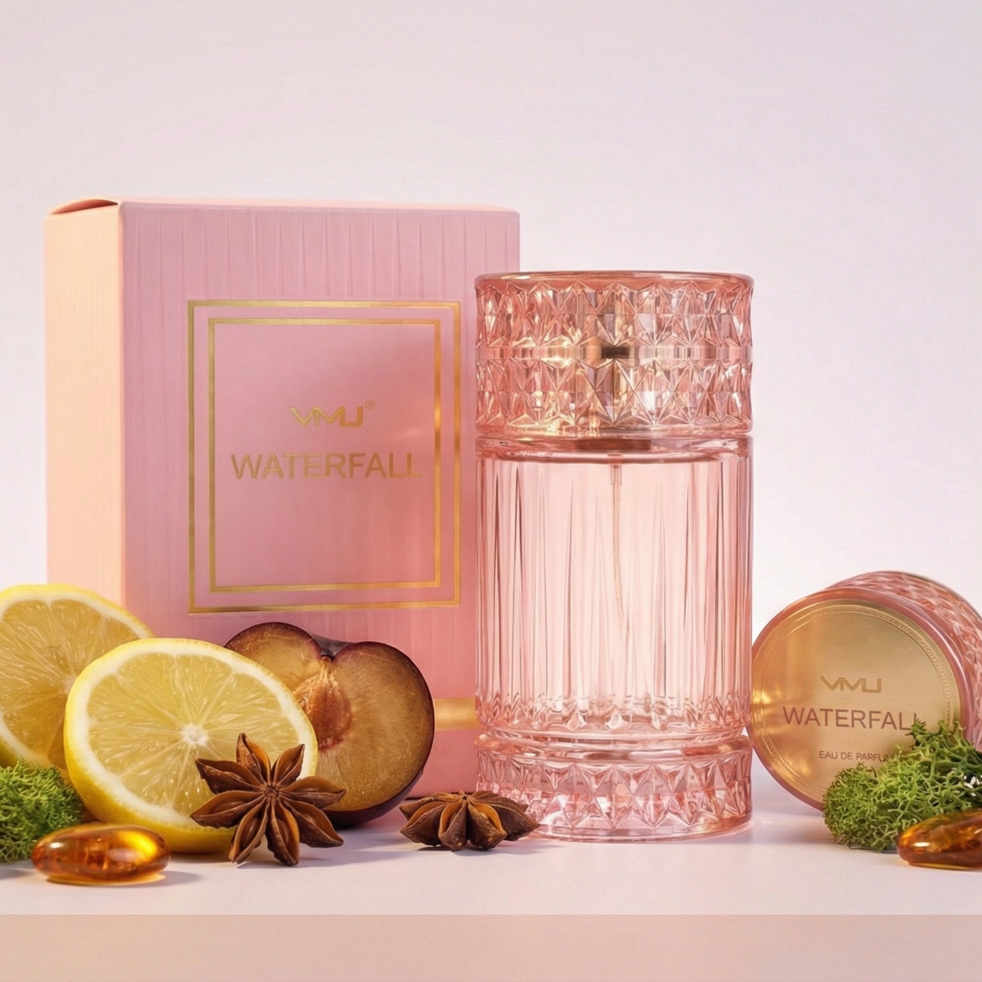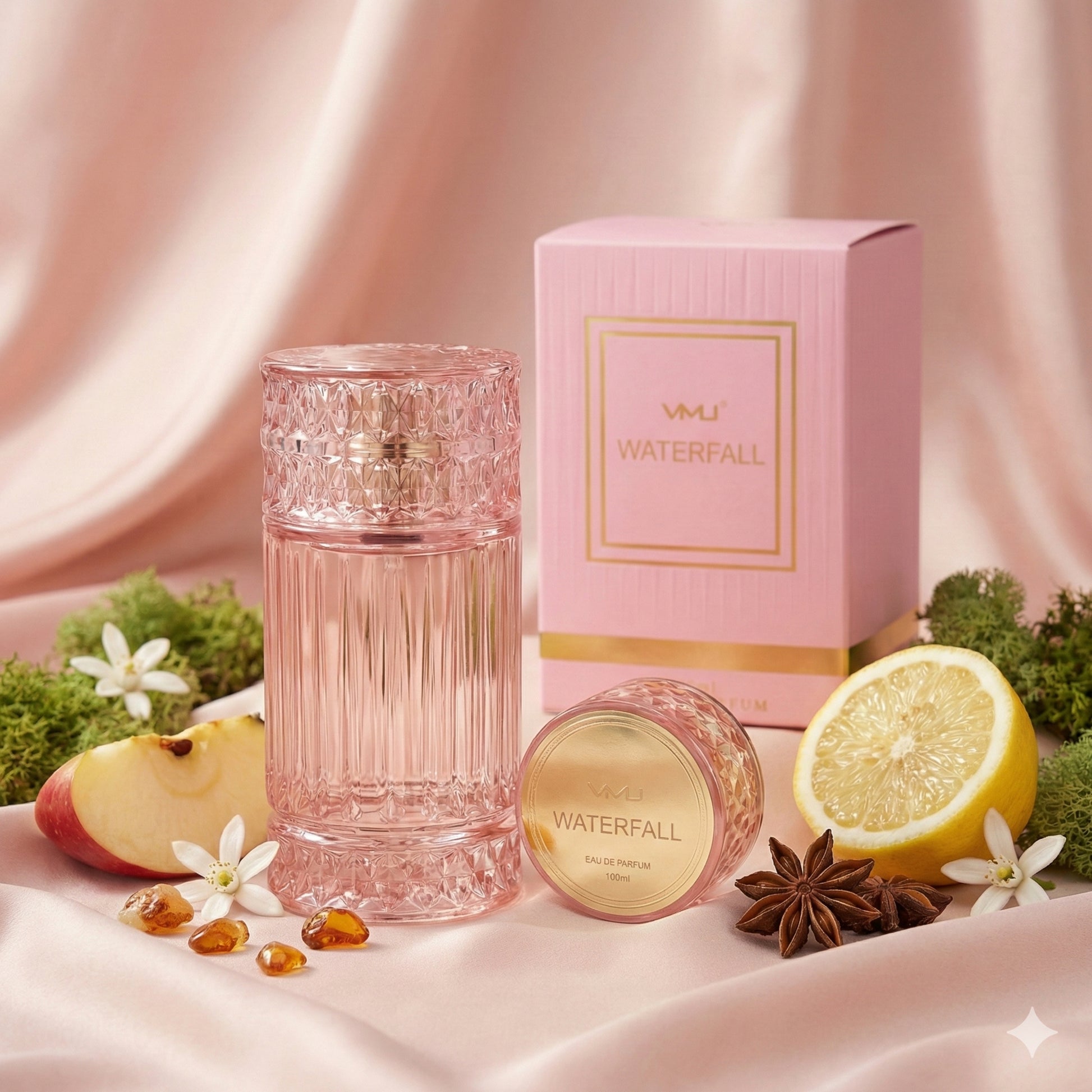 Waterfall 100 ml Pink Eau De Parfum blends crisp apple and citrus with floral orange blossom and plum, finishing in warm musk and amber.